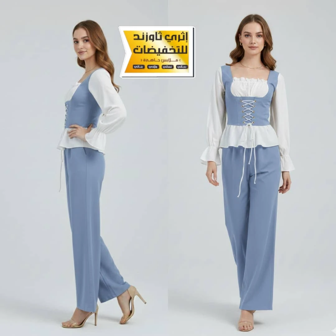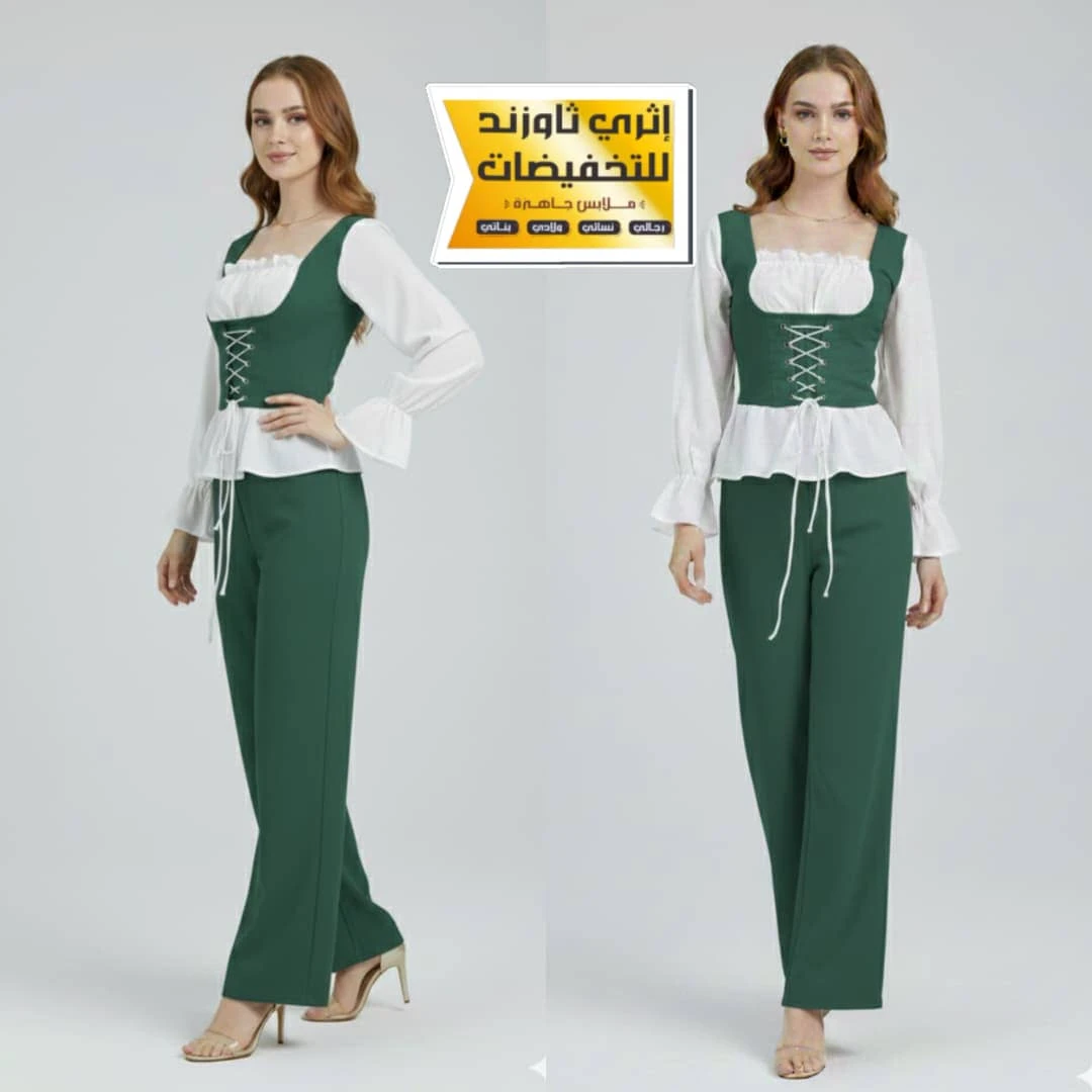 طقم نسائي بتصميم متوازن يجمع البساطة والرقي